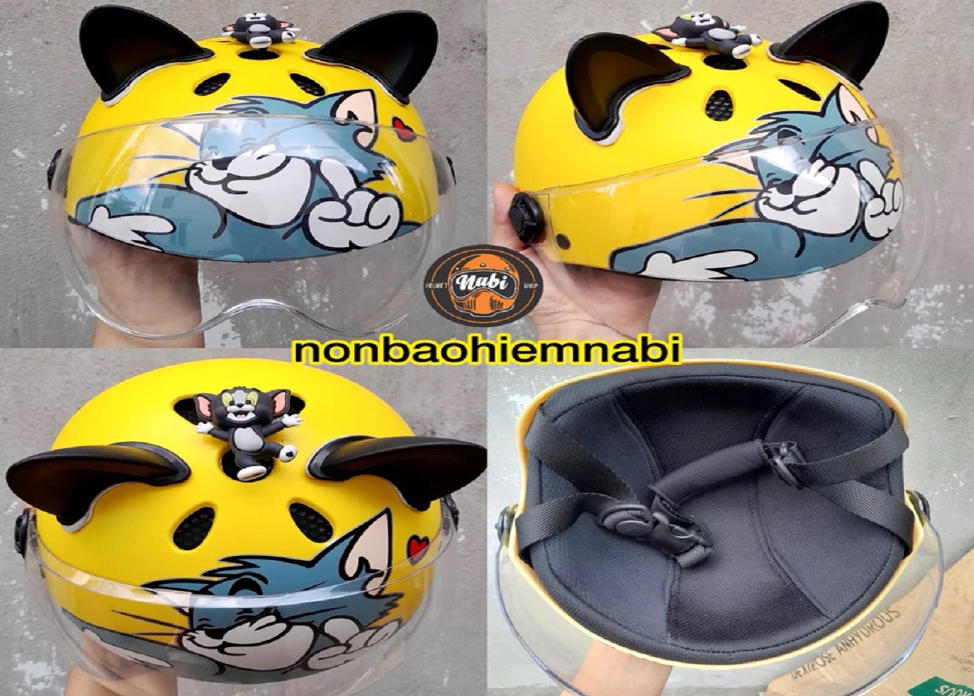 Mũ bảo hiểm Tom & Jerry 3d siêu dễ thương cho bé iu, mũ bảo hiểm nữa đầu Mèo Chuột có kính bảo vệ bé iu an toàn.