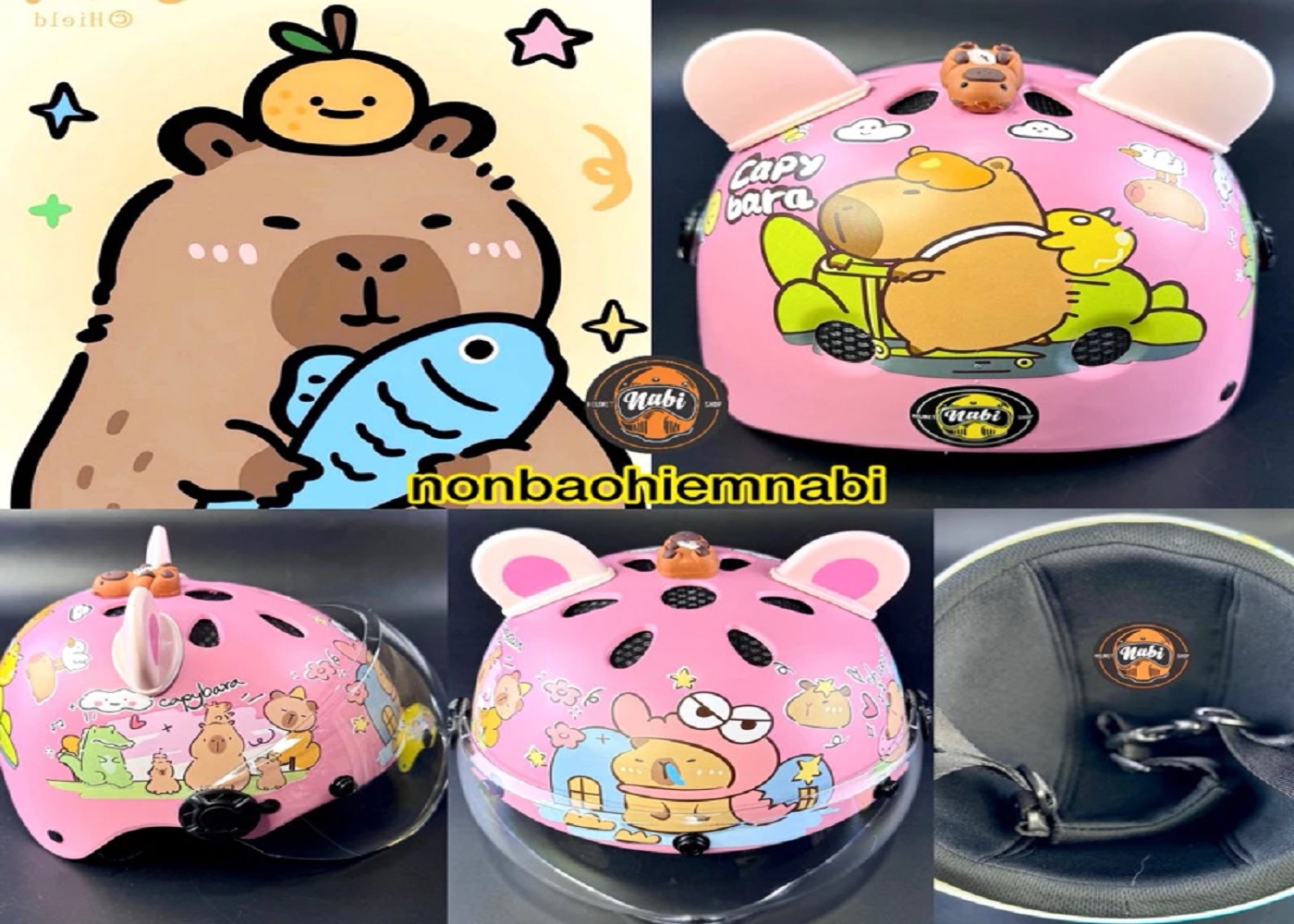 Mũ bảo hiểm Bộ Trưởng Ngoại Giao Capybara siêu dễ thương cho bé iu, mũ bảo hiểm kính Capybara nữa đầu có kính bảo vệ bé iu an toàn. 3 màu Nâu Vàng & Hồng