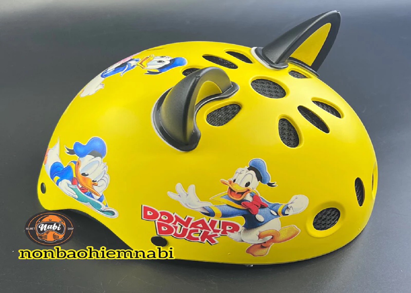 - Tặng Tai kèm nón, Phôm nón bảo hiểm trẻ em Vịt Donald gọn nhẹ có thông hơi siêu thoáng mát. đội nhẹ đầu cực kì