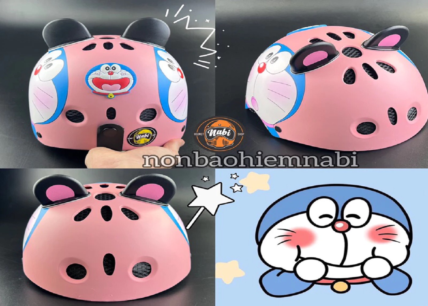 Mũ bảo hiểm trẻ em doreamon có lỗ thông gió siêu mát, nón bảo hiểm doremon siêu nhẹ luôn, Tặng charm Doremon kèm nón