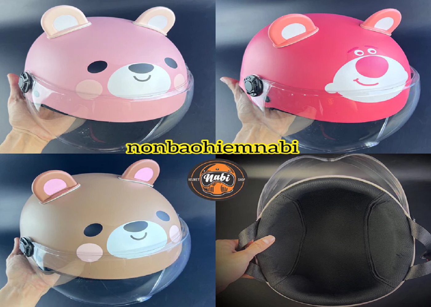 SP Mũ bảo hiểm kính trẻ em hình gấu dâu hồng dễ thương chuẩn chất lượng tặng tai nhựa mềm rất an toàn cho Bé &Ng lớn