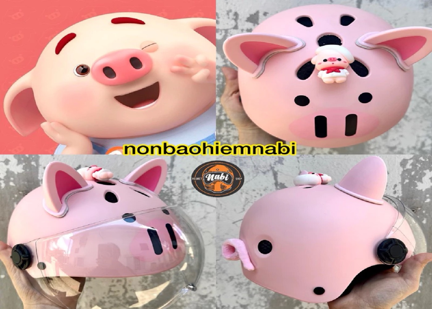 Mũ bảo hiểm kính cho bé hình chú lợn nhẹ ~330grqm ~350gram phù hợp cho trẻ em