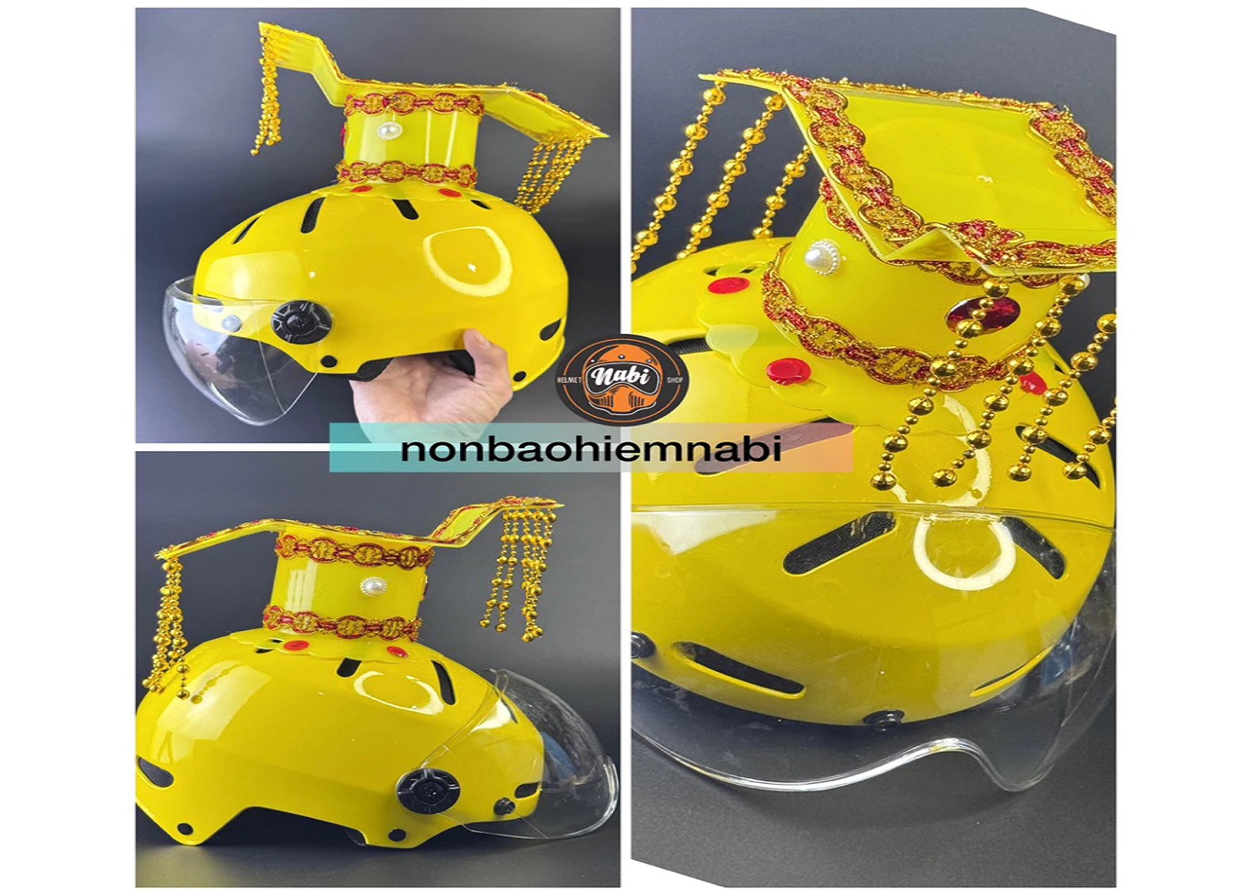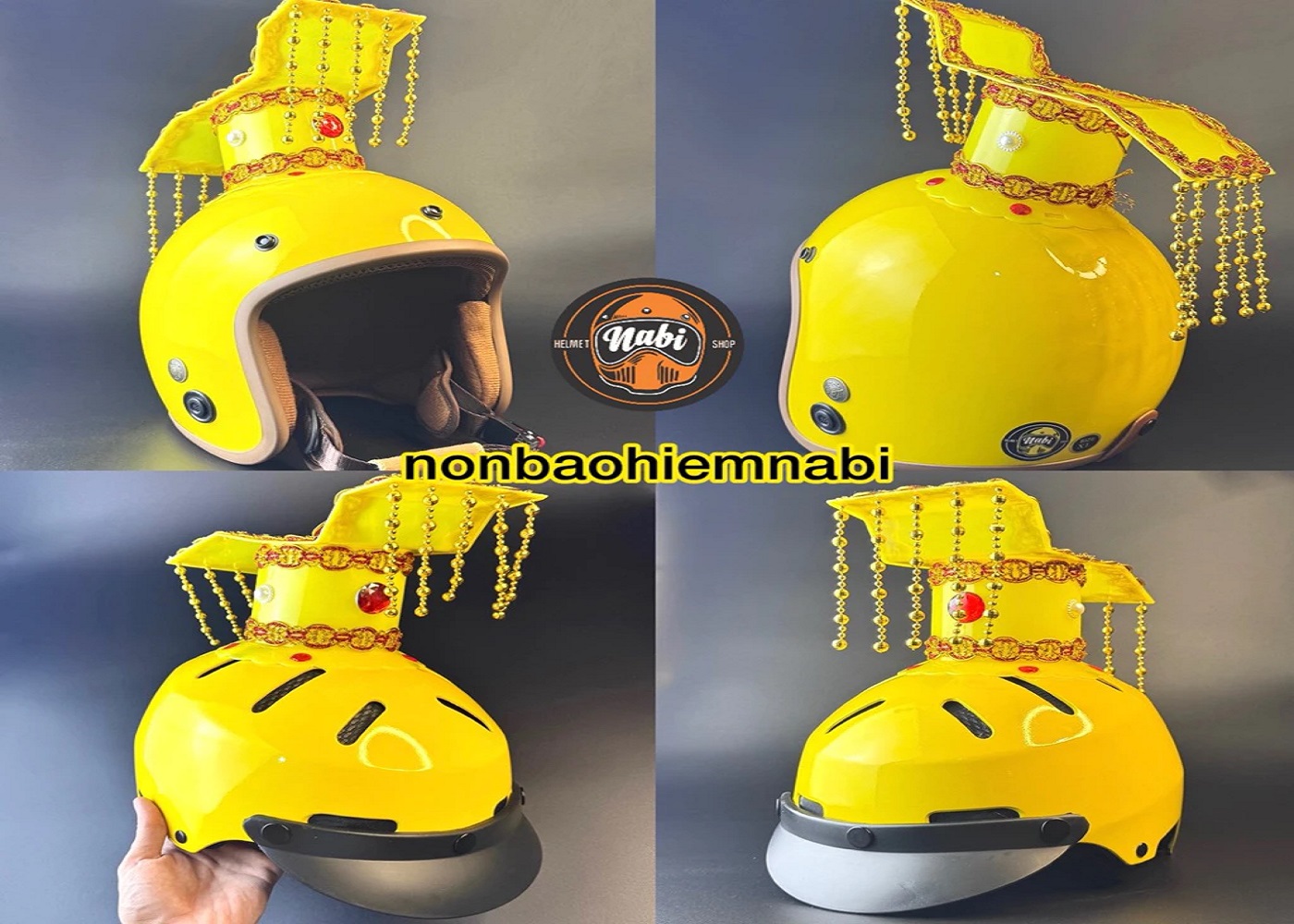 Bộ sưu tập mũ bảo hiểm Hoàng Thượng, mũ bảo hiểm hình ấm nước và mũ bảo hiểm hình nồi cơm mang đến phong cách cá tính – vui nhộn – an toàn cho người dùng. Sản phẩm được sản xuất trực tiếp tại Việt Nam với tiêu chuẩn chất lượng cao, sử dụng nhựa ABS siêu bền, chịu lực tốt, đảm bảo an toàn khi lưu thông.