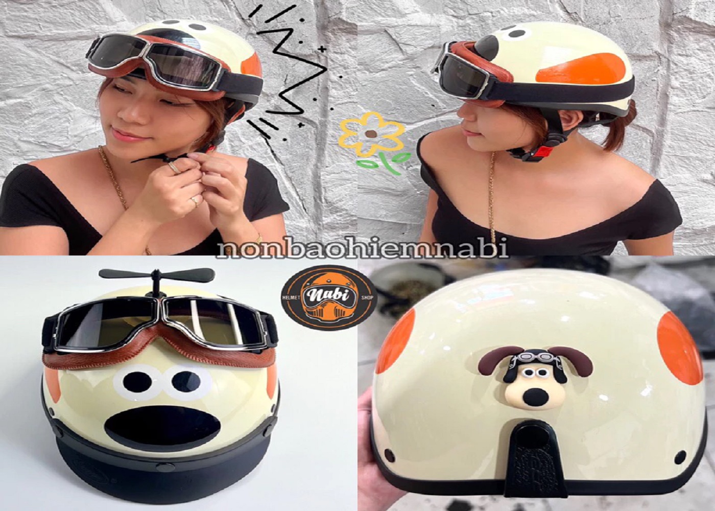 SP Mũ bảo hiểm kính hình chú chó siêu chuẩn chất lượng tặng kính, rất an toàn cho Bé & Ng Lớn.