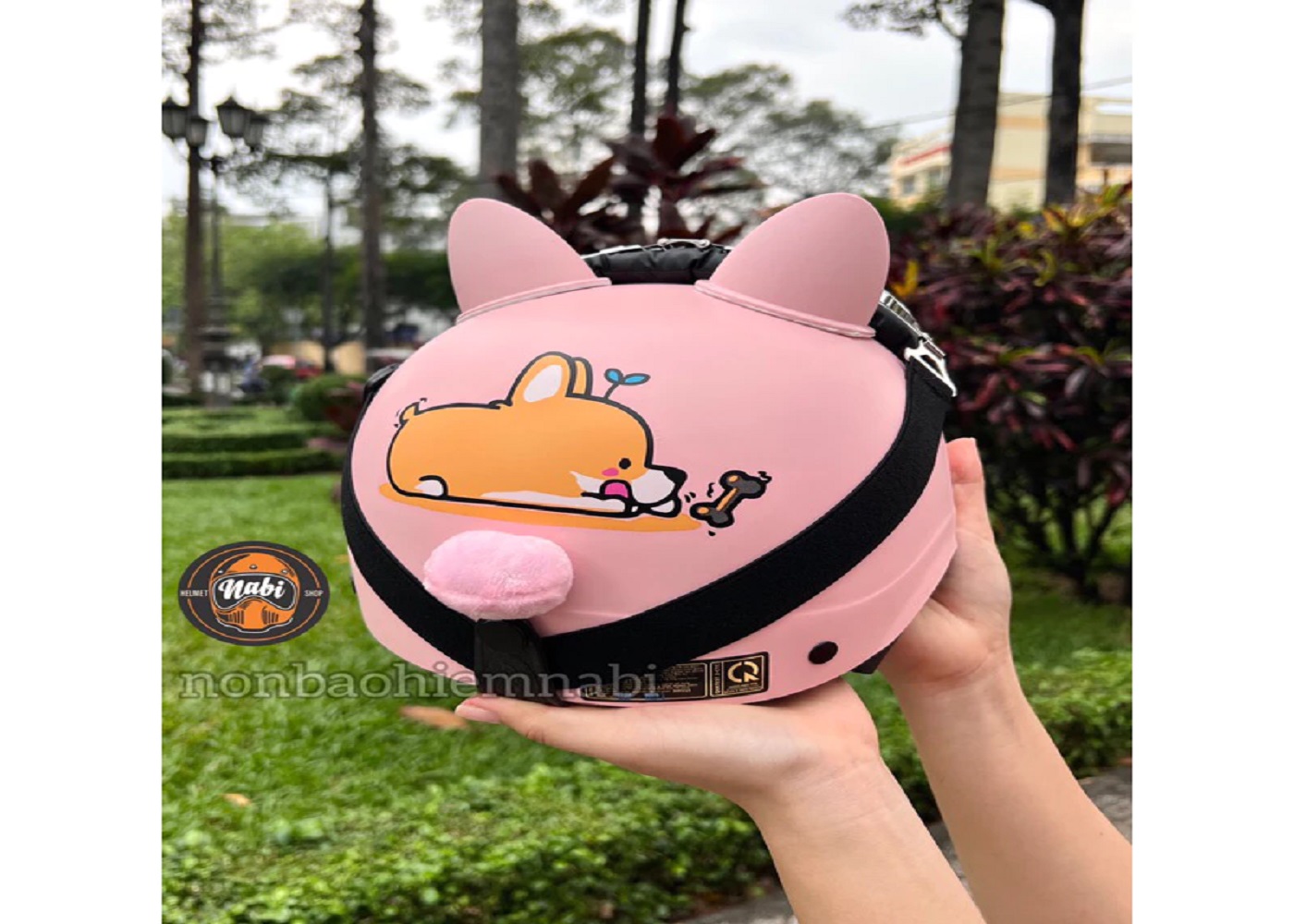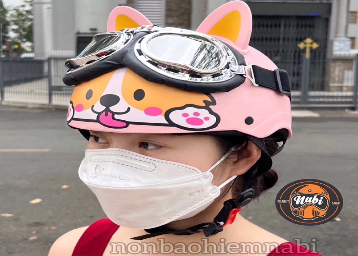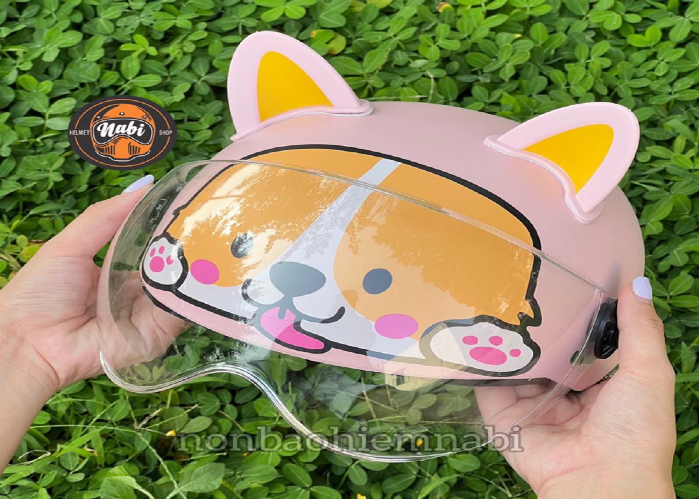 SP Mũ bảo hiểm kính cún corgi hồng chuẩn chất lượng tặng tai nhựa mềm rất an toàn cho Bé &Ng lớn