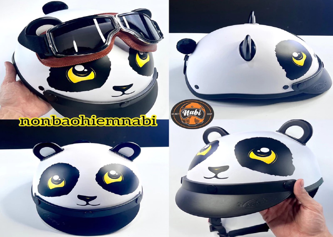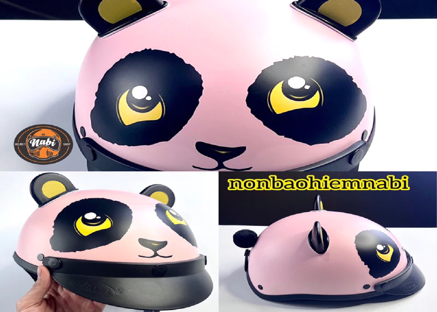 SP Mũ bảo hiểm kính panda Trắng Hồng chuẩn chất lượng tặng tai nhựa mềm rất an toàn cho Bé &Ng lớn