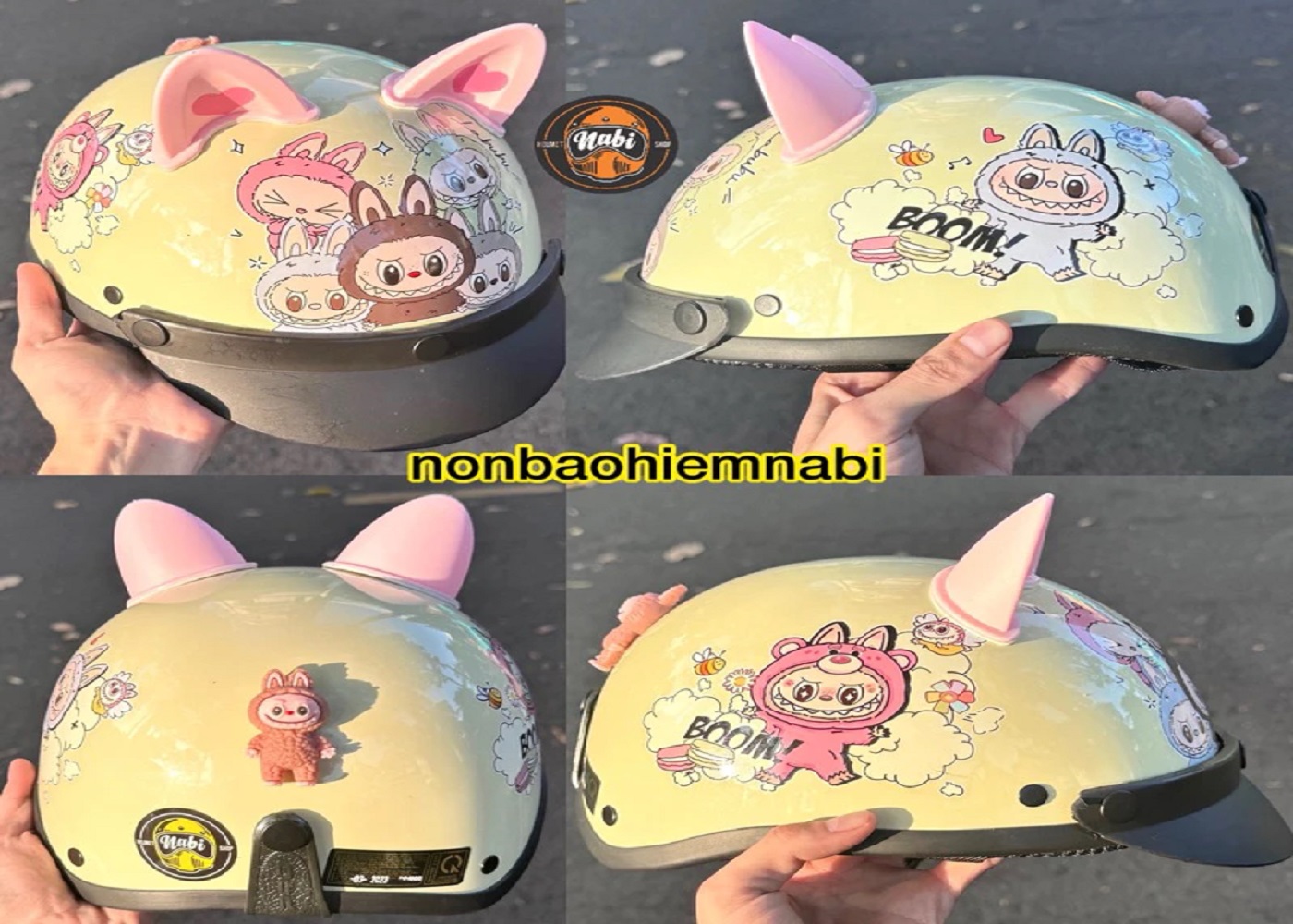 Phôm nón bảo hiểm dễ thương kính da Labubu gọn nhẹ đảm bảo chất lượng
