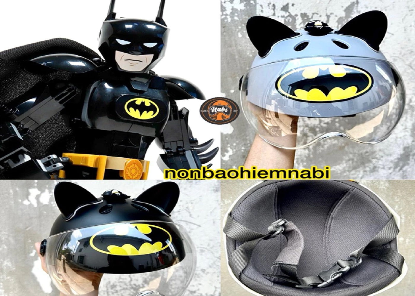 Mũ bảo hiểm siêu nhân Batman siêu ngầu dễ thương cho bé iu, mũ bảo hiểm nữa đầu Batman có kính bảo vệ bé iu an toàn. 2 màu xám cam.