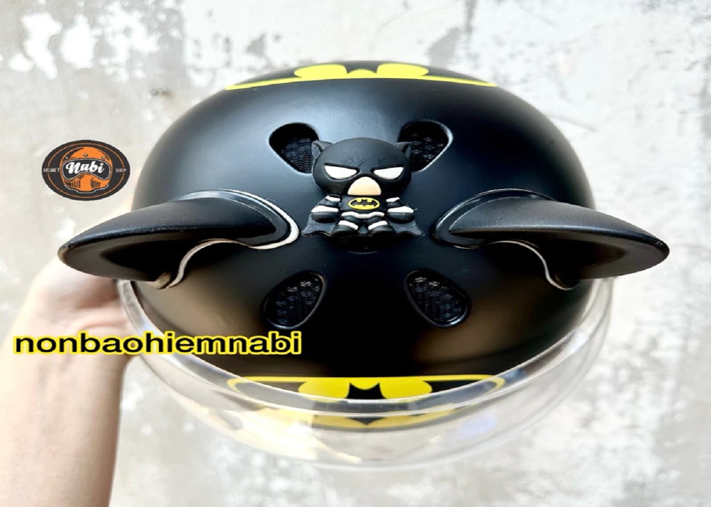Mũ bảo hiểm kính cho bé hình người dơi Batman nhẹ ~330grqm ~350gram phù hợp cho trẻ em