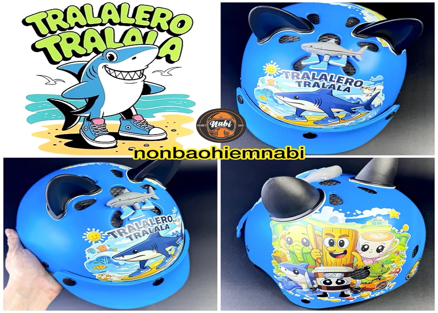MŨ BẢO HIỂM CÁ MẬP 3 CHÂN TRALALERO TRALALA CHO TRẺ EM – DỄ THƯƠNG & AN TOÀN