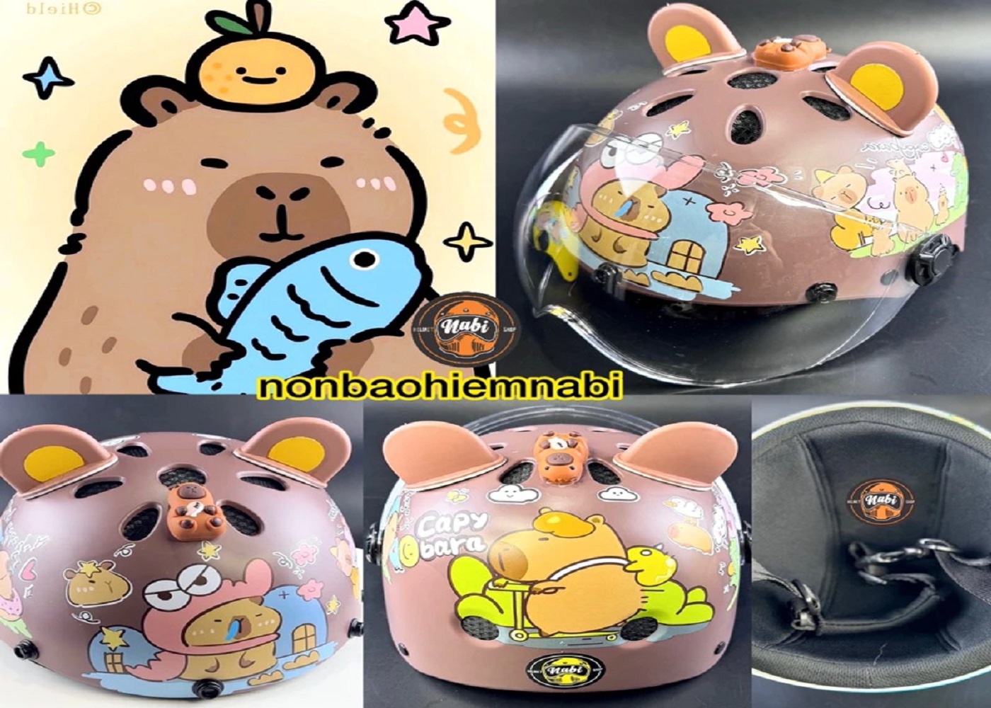 Mũ bảo hiểm kính cho bé hình Capybara nhẹ ~350gram 400 gram phù hợp cho trẻ em
