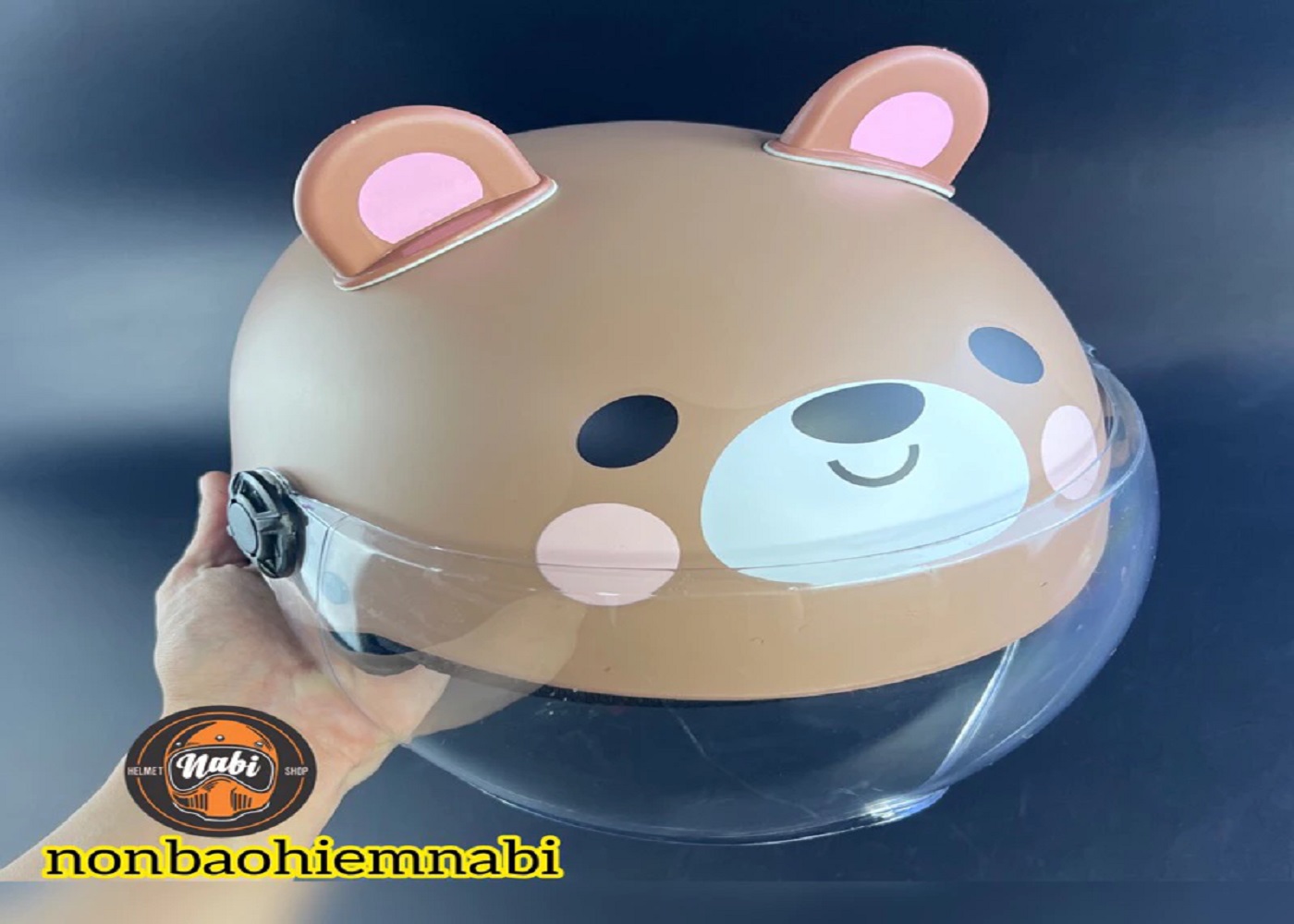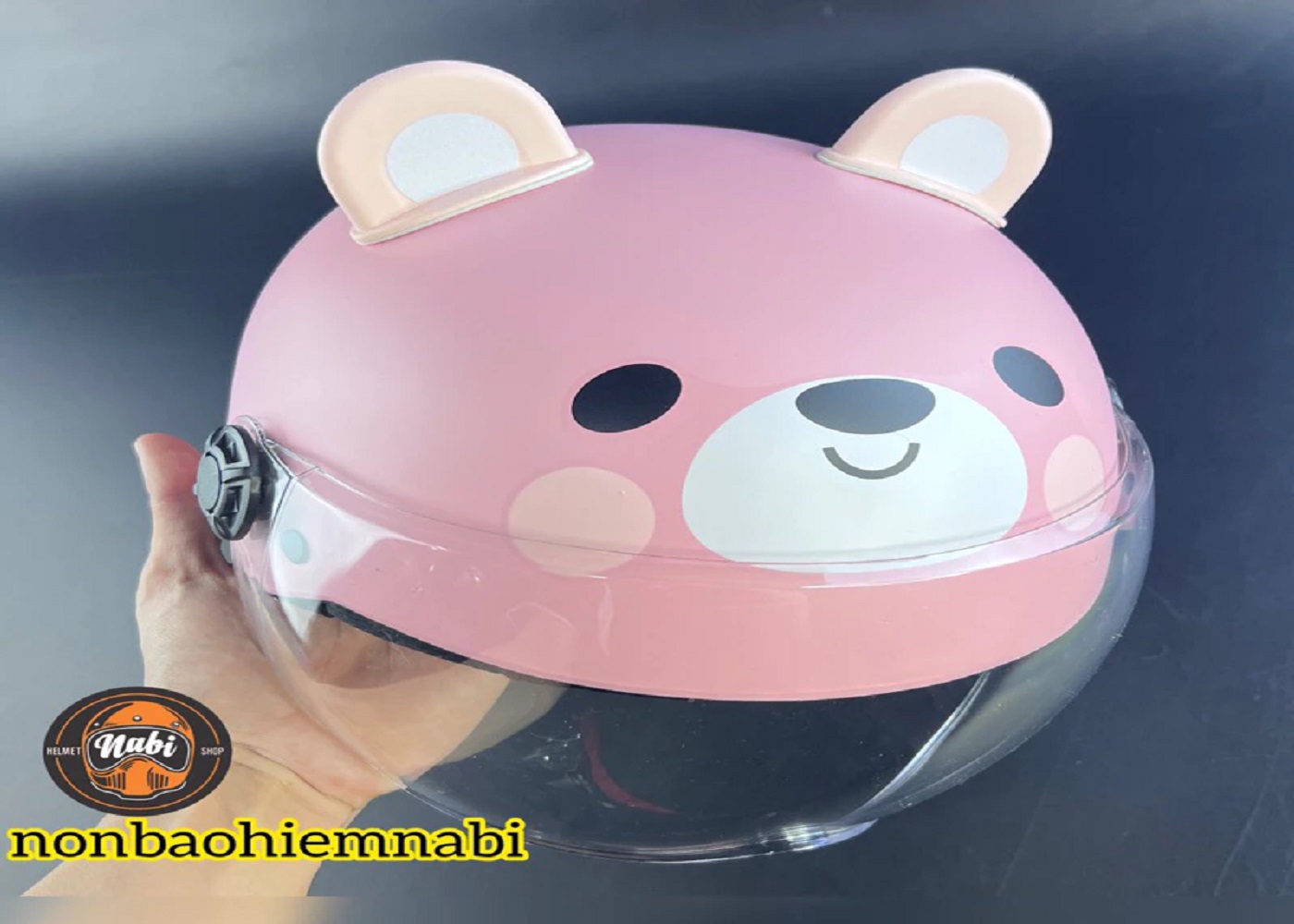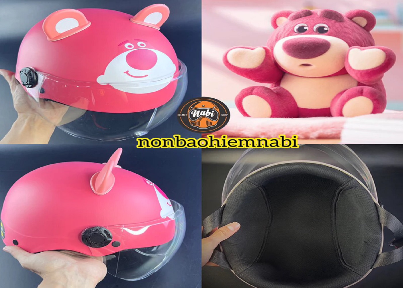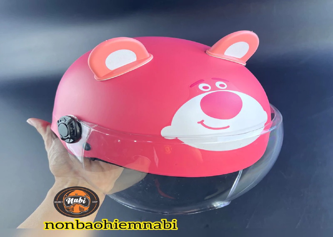 SP Mũ bảo hiểm kính trẻ em hình gấu dâu hồng dễ thương chuẩn chất lượng tặng tai nhựa mềm rất an toàn cho Bé &Ng lớn