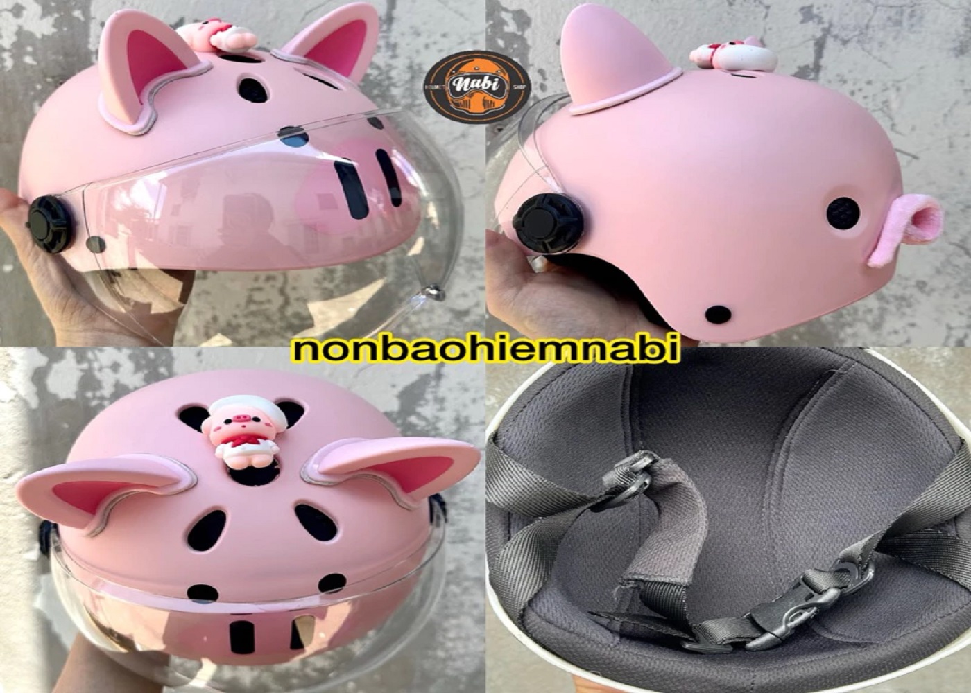 Mũ bảo hiểm kính cho bé hình chú lợn nhẹ ~330grqm ~350gram phù hợp cho trẻ em
