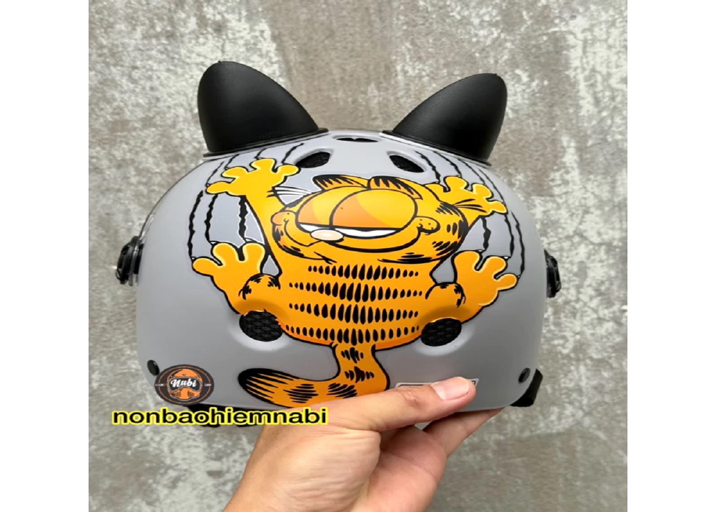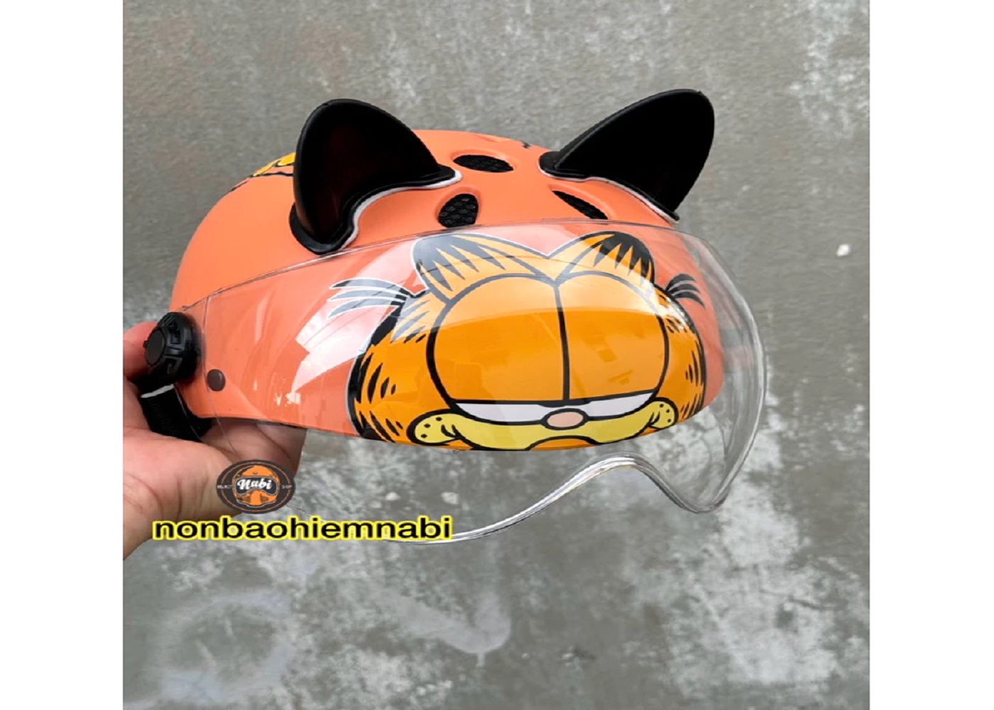 Mũ bảo hiểm mèo Garfield siêu dễ thương cho bé iu, mũ bảo hiểm nữa đầu Garfield có kính bảo vệ bé iu an toàn. 2 màu xám cam.