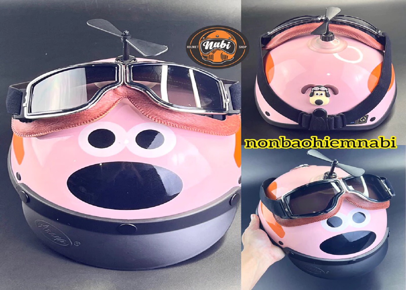 SP Mũ bảo hiểm kính hình chú chó siêu chuẩn chất lượng tặng kính, rất an toàn cho Bé & Ng Lớn.