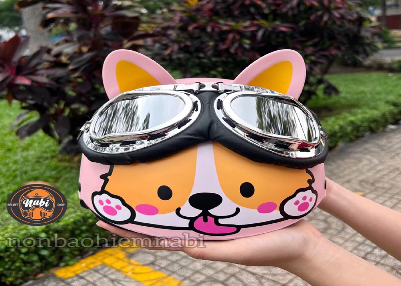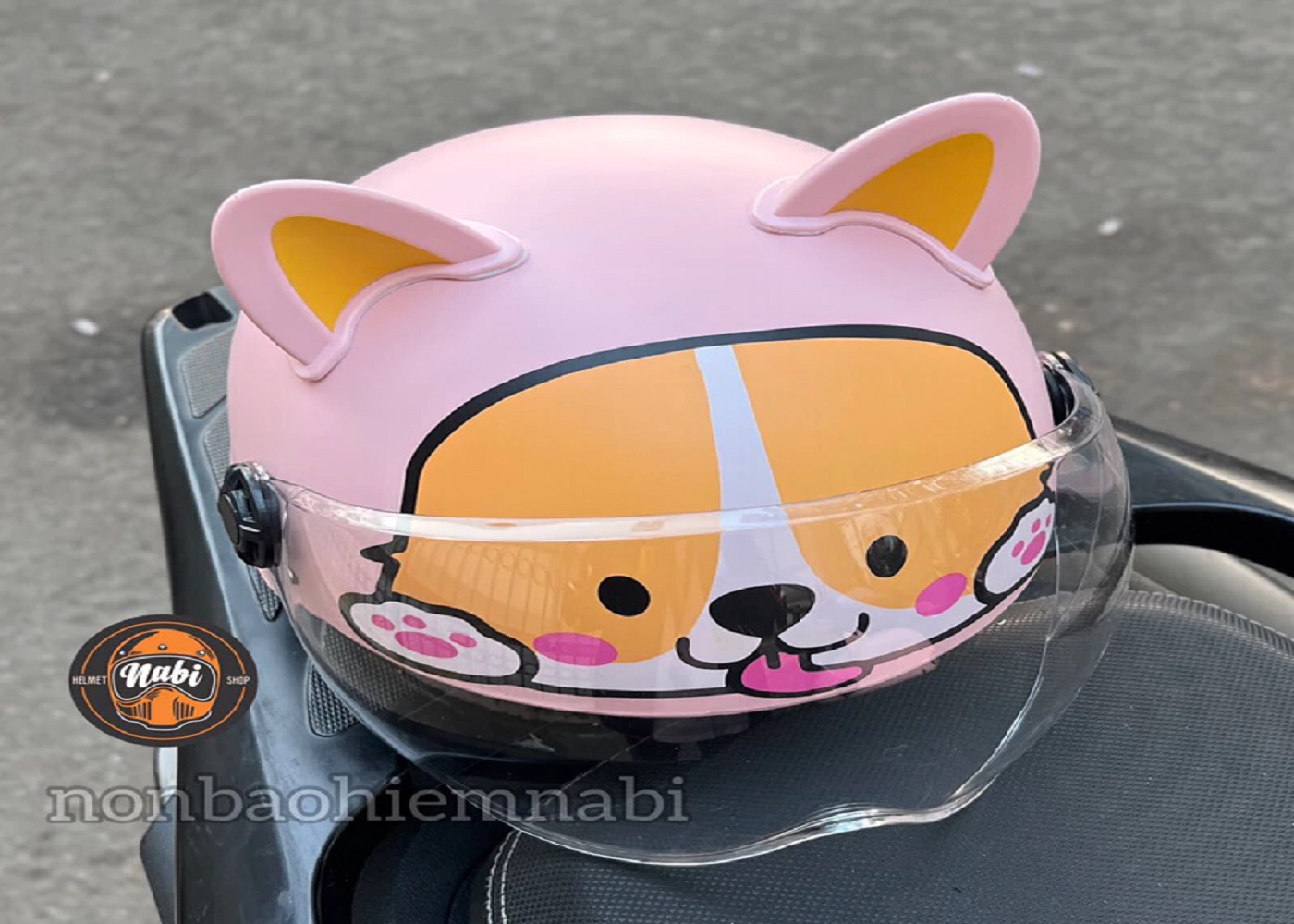 SP Mũ bảo hiểm kính cún corgi hồng chuẩn chất lượng tặng tai nhựa mềm rất an toàn cho Bé &Ng lớn