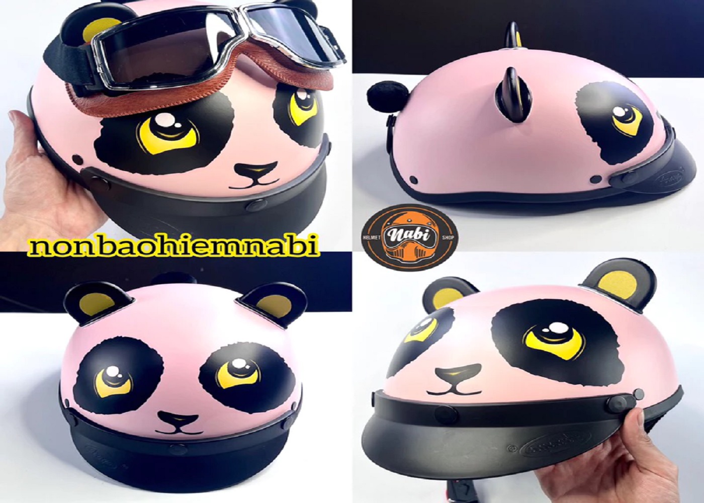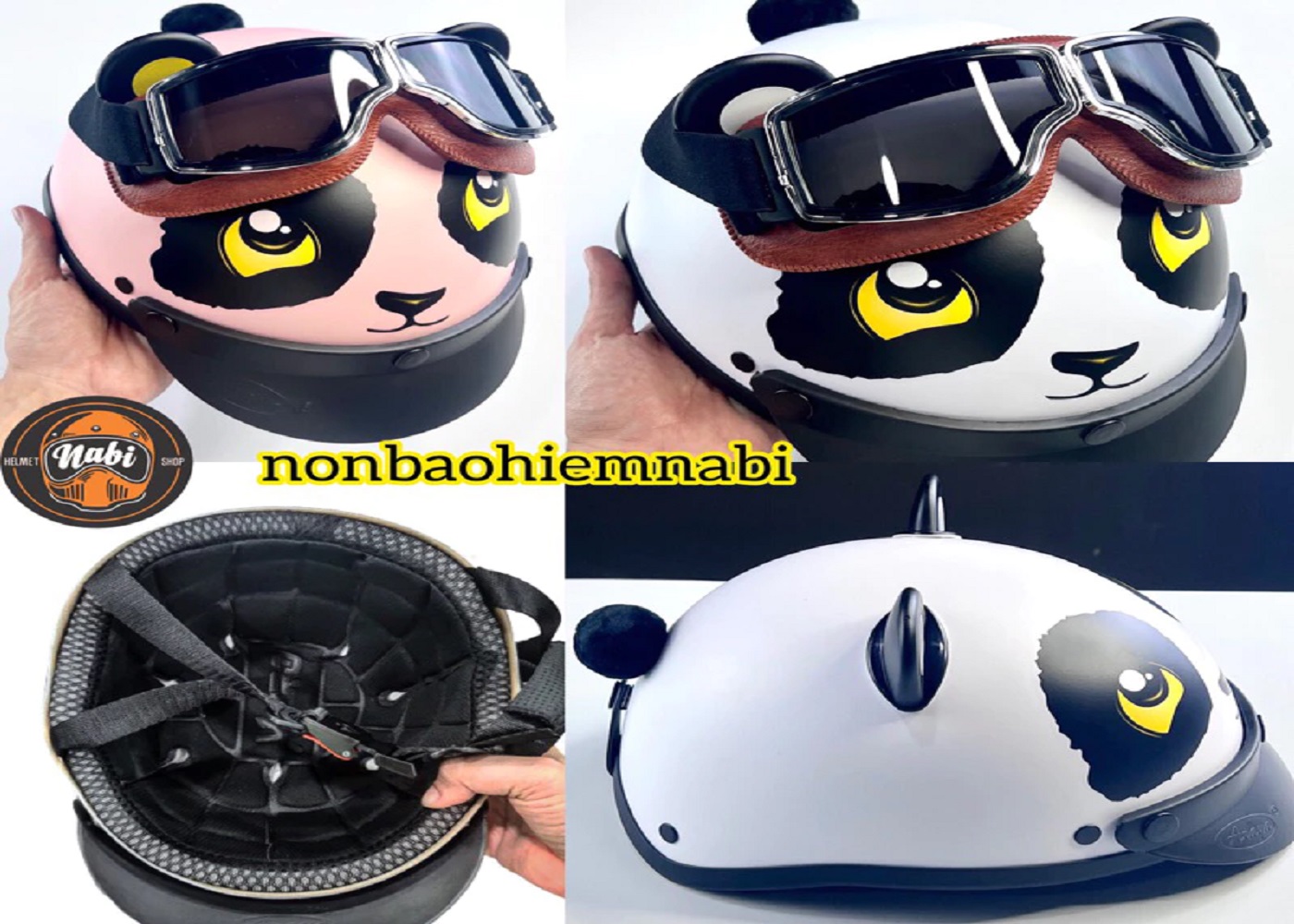 SP Mũ bảo hiểm kính panda Trắng Hồng chuẩn chất lượng tặng tai nhựa mềm rất an toàn cho Bé &Ng lớn